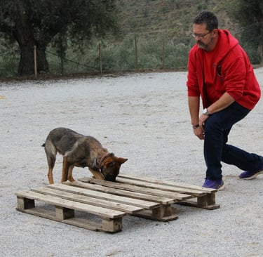 En la escuela veo con frecuencia perros que parecen vivir acelerados, como si no pudieran bajar el ritmo. Les cuesta descansar, desconectar, simplemente estar. A veces se interpreta esta inquietud como exceso de energía, cuando en realidad es falta de calma interna. Su sistema nervioso está siempre un paso por delante, anticipando, vigilando, sin herramientas suficientes para aterrizar. En esos casos, el olfato puede convertirse en su mejor aliado.
